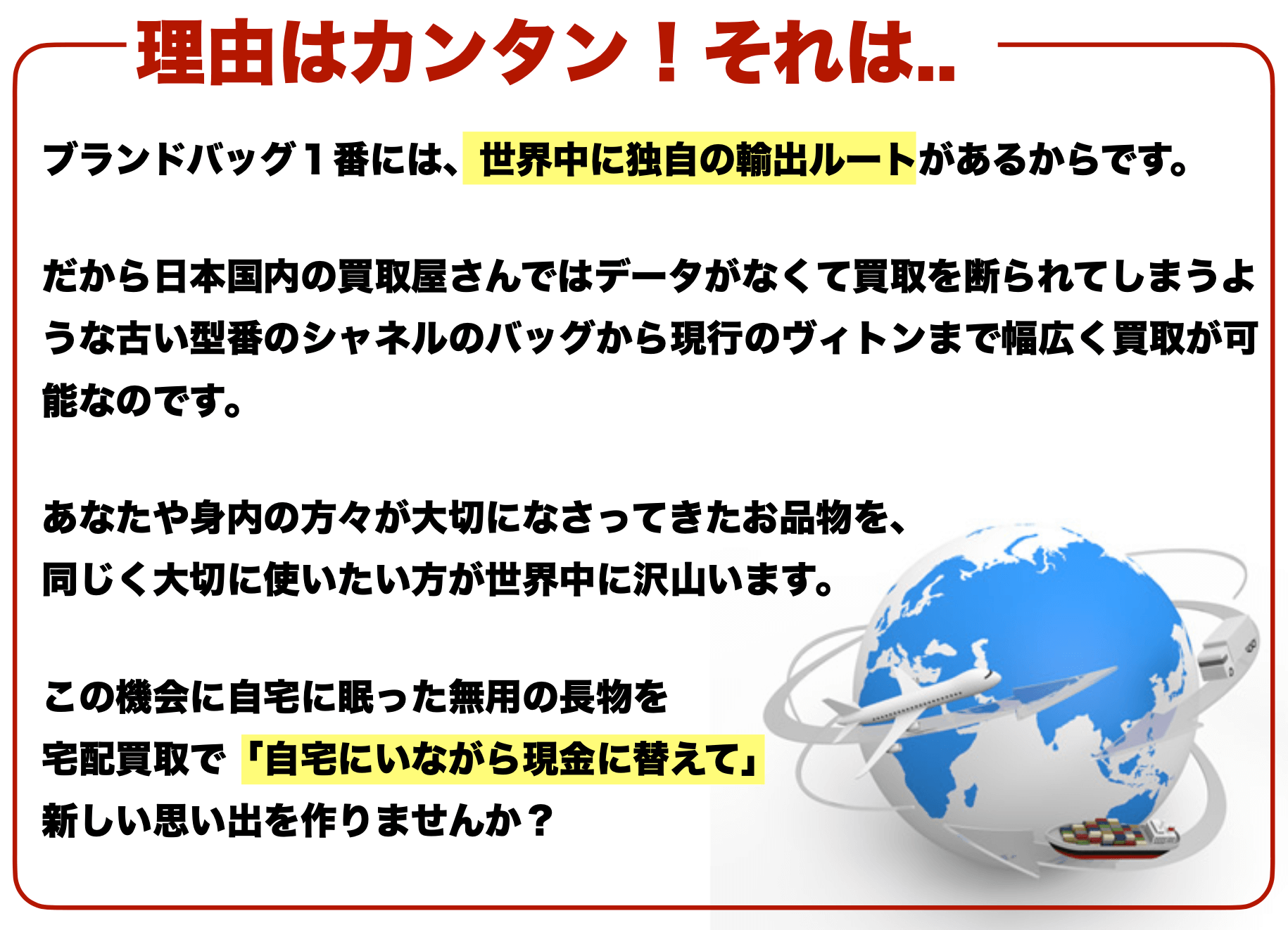 日本で買い取ったブランドバッグに特化して海外に向けて販路を展開しています。
